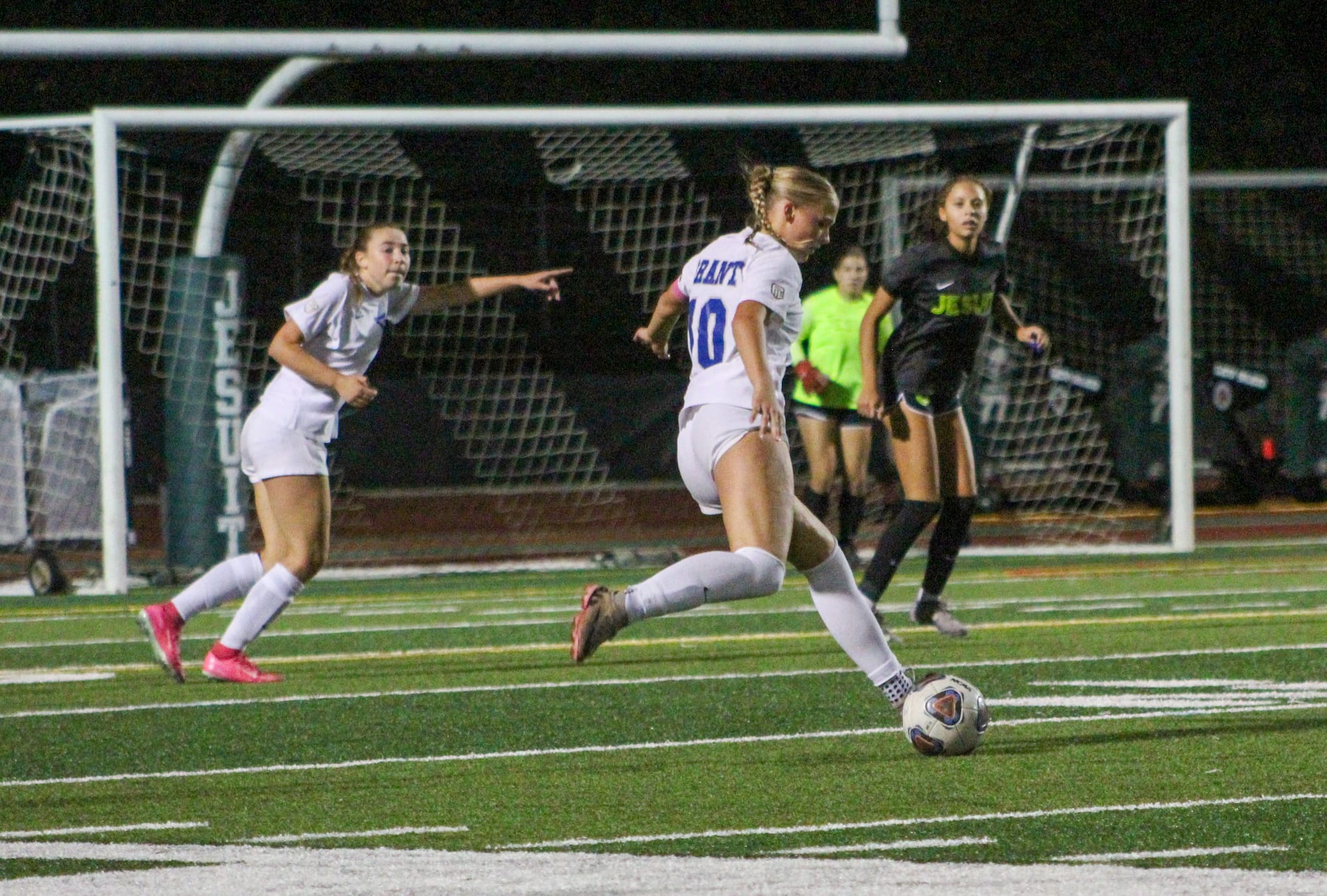 In the second half, Jesuit started to pepper in more shots, including in the 54th minute when Jesuit sophomore Aaliyah Johnson broke free from three Grant defender for a wide-open look on goal.