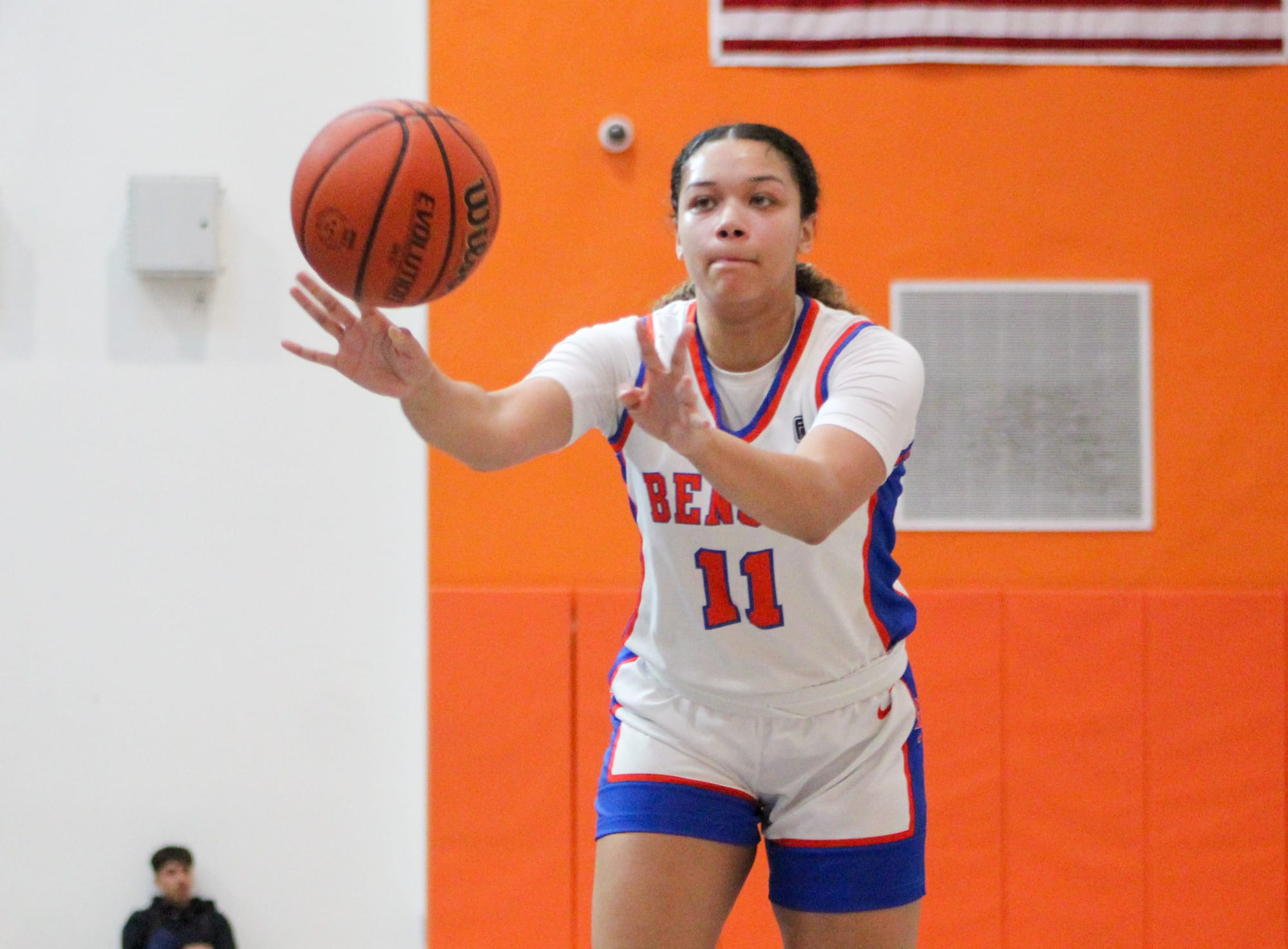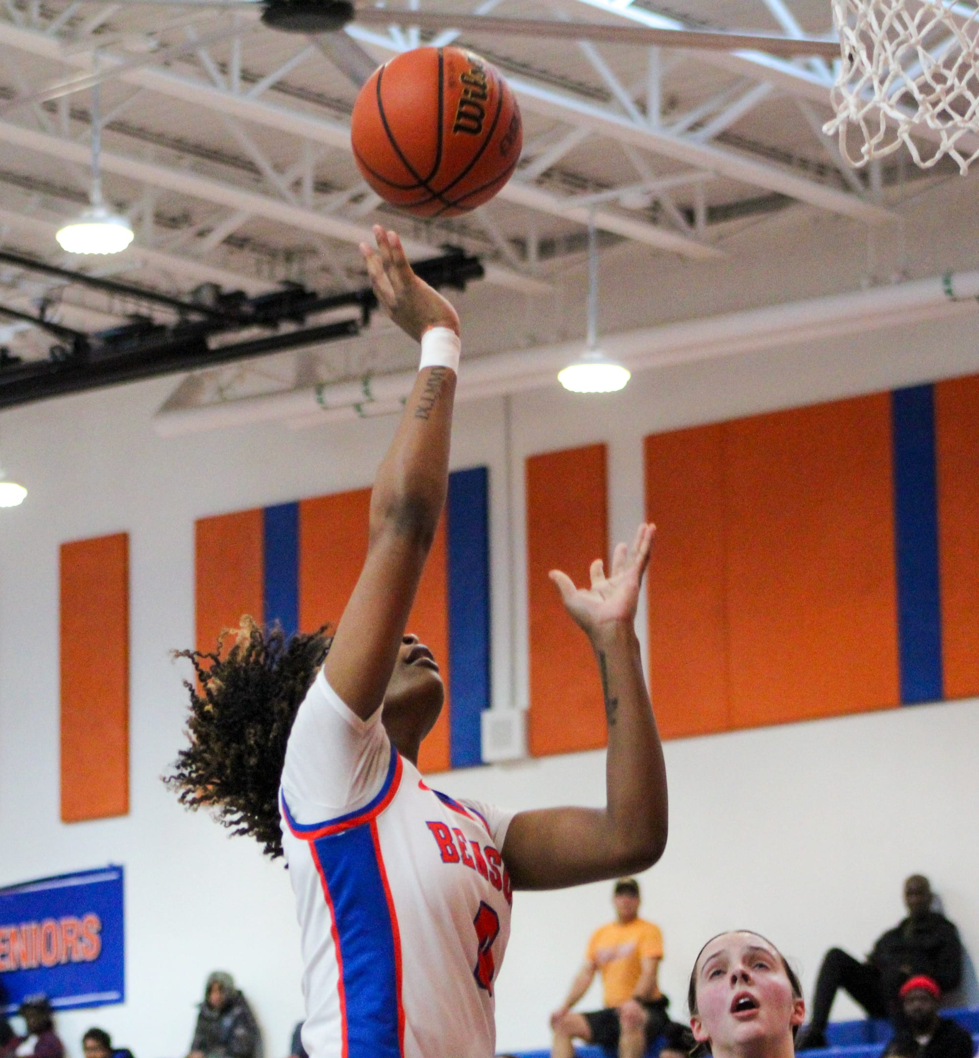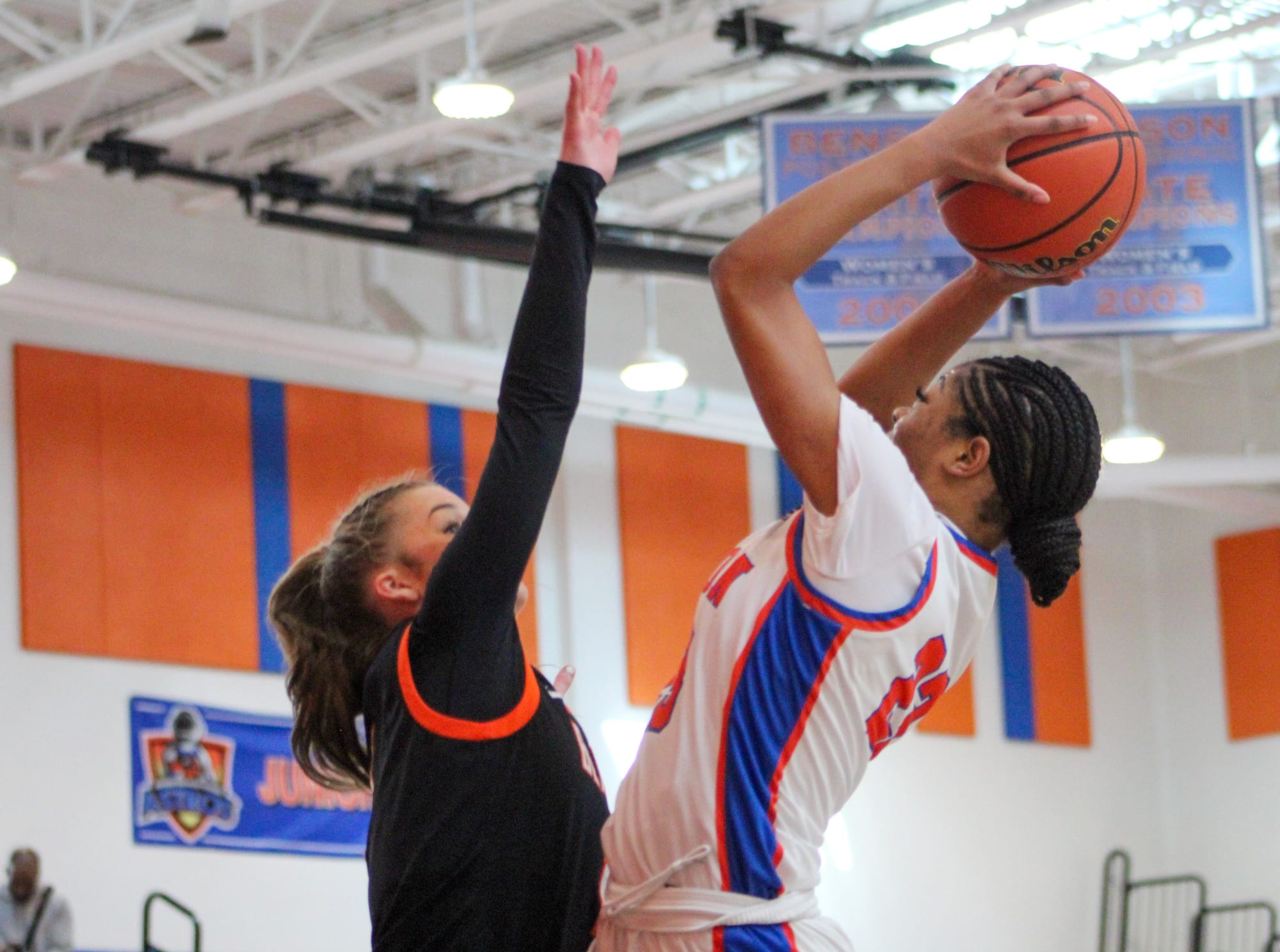 Benson came out of the gates causing havoc on defense, especially Massey who had a couple steals, one leading to a breakaway layup that put her above 1,500 career points.